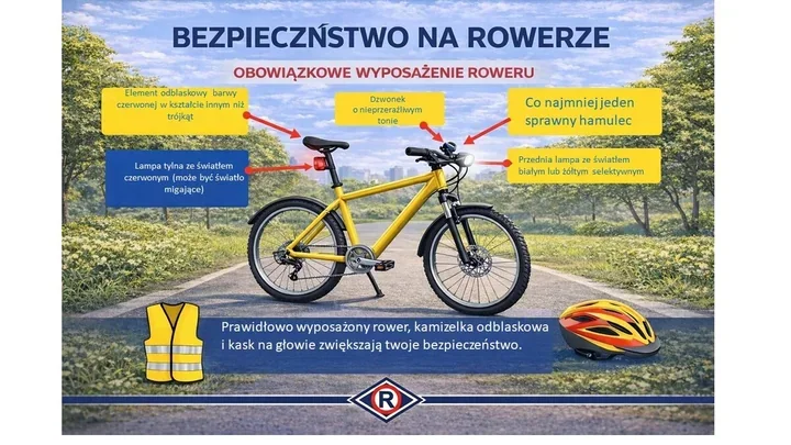 Dlatego każdy rower poruszający się po drodze musi być sprawny i wyposażony zgodnie z przepisami. Z przodu powinno znajdować się co najmniej jedno białe albo żółte selektywne światło pozycyjne, także migające, używane po zmroku. Z tyłu potrzebne jest czerwone światło odblaskowe o innym kształcie niż trójkąt oraz co najmniej jedno czerwone światło pozycyjne, również dopuszczalne w wersji migającej. Do tego dochodzi skuteczny hamulec i dzwonek albo inny sygnał ostrzegawczy o nieprzeraźliwym dźwięku.