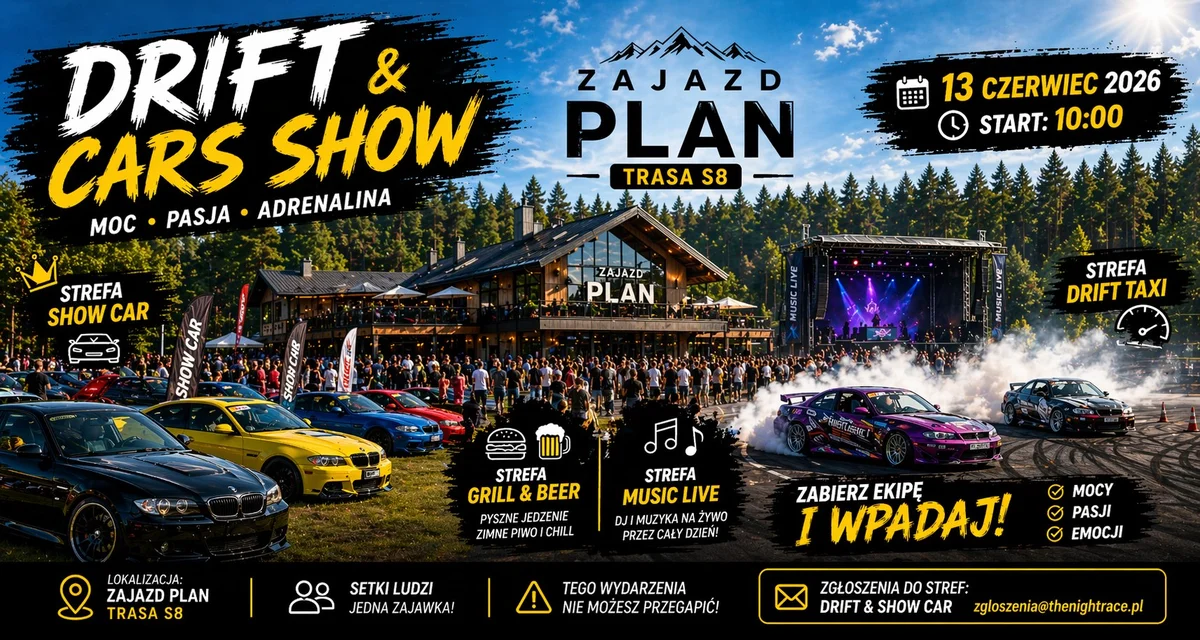 To wydarzenie brzmi jak dobra opcja nie tylko dla fanów motoryzacji, ale też dla osób, które po prostu lubią letnie imprezy z charakterem. Połączenie aut, driftu, muzyki i klimatu przy lesie robi swoje, a nowoczesna karczma i otoczenie S8 tylko podbijają wrażenie, że będzie się działo naprawdę sporo